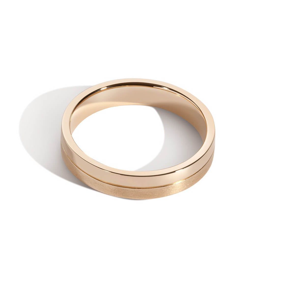 The Horizontal Better Half Band features a 50/50 high polish/horizontal satin finish separated by a groove at the band's center.