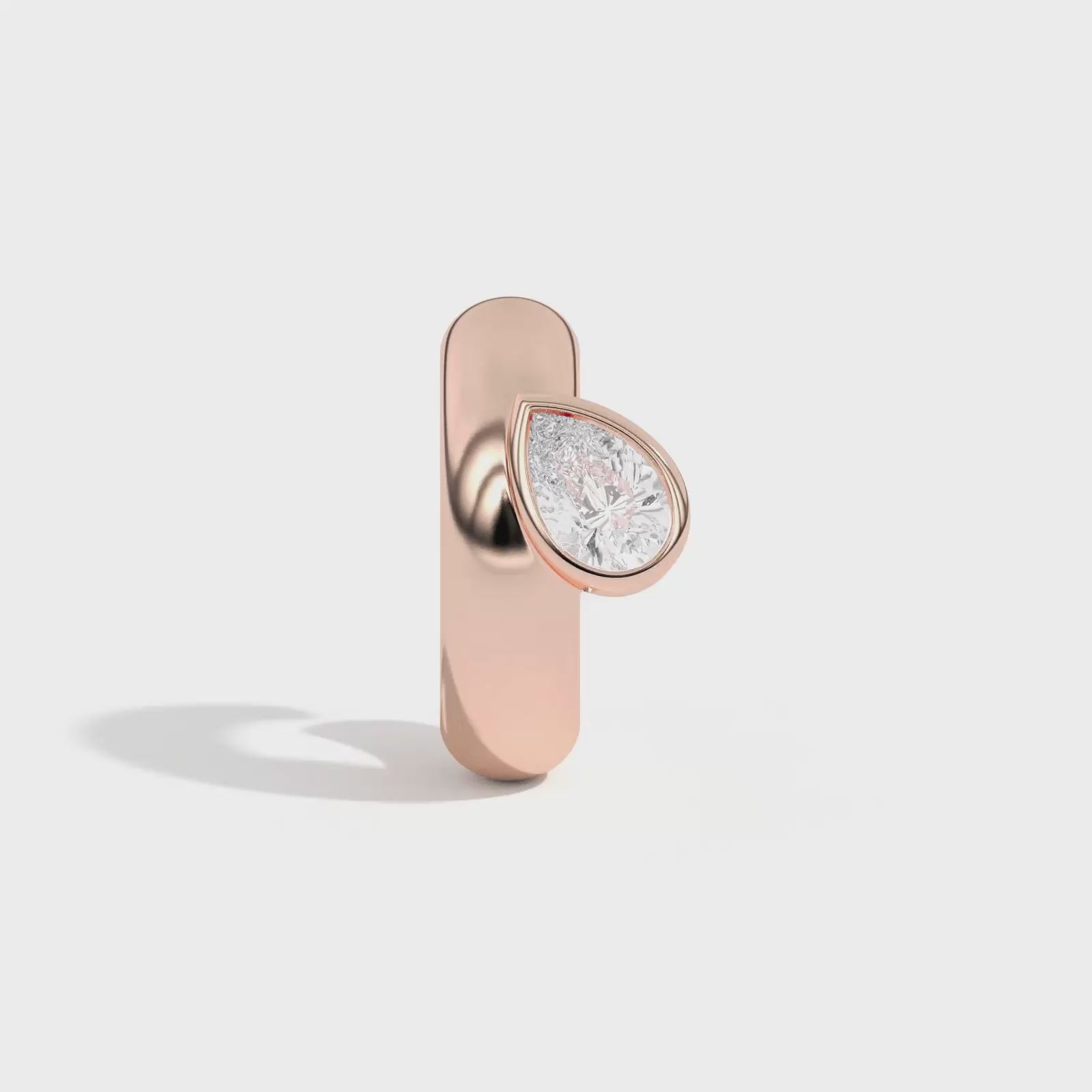 The Cloud Ear Cuff with Pear orchestrates a symphony of metaphysical beauty through its elegant domed contours and reflective surfaces, seamlessly harmonizing the worlds of art, architecture, and romance. A bezel-set pear diamond rests cantilevered on the domed edge of a sculptural ear cuff.