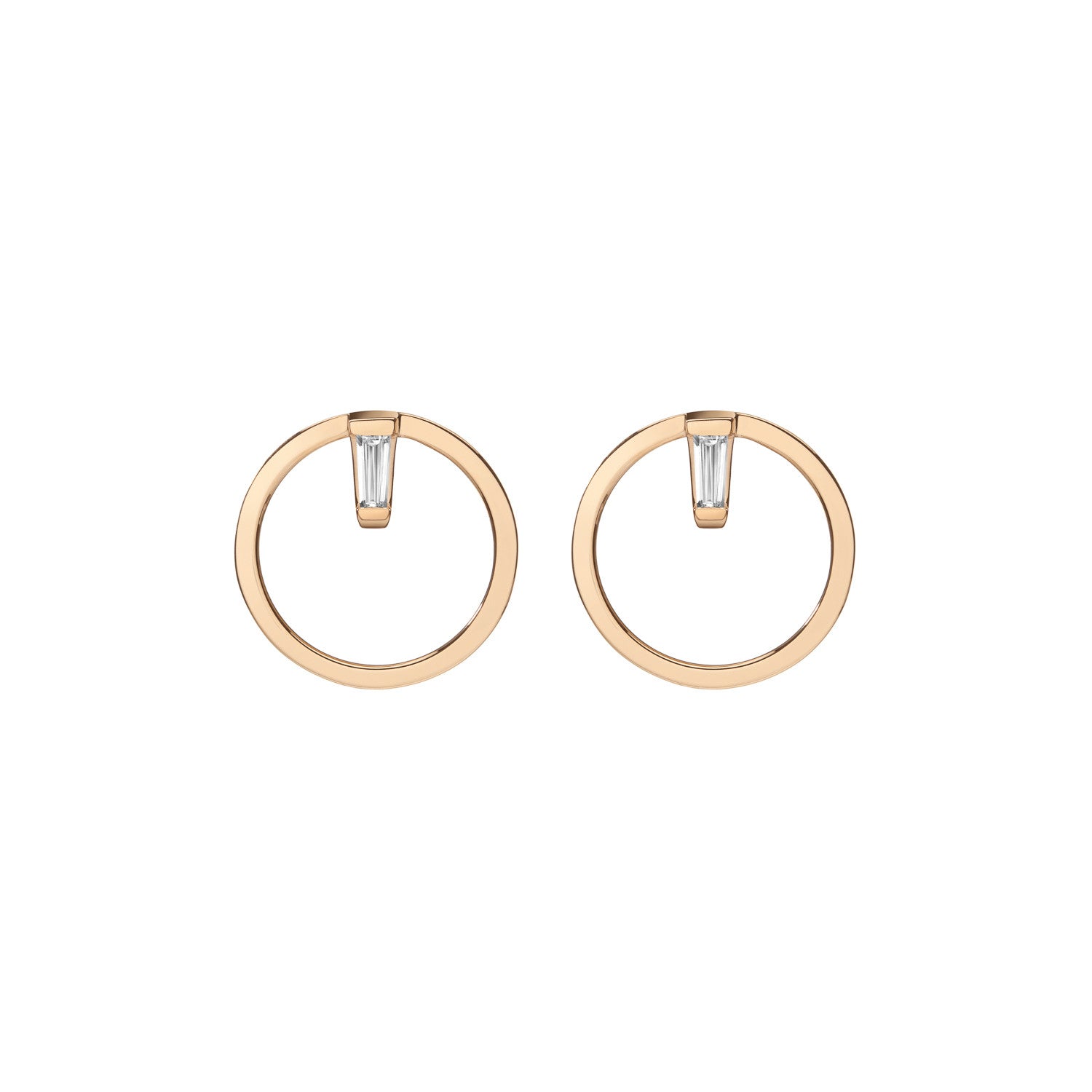 Shahla Karimi Jewelry Landmark Collection 14K Rose Gold Chrysler Hoop Stud Earring with White Diamond Tapered Baguette