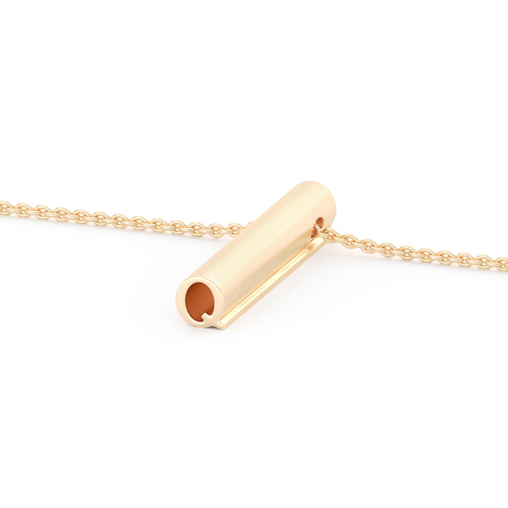 Pendant measures 31mm in length and features a sleek horizontal satin finish. While designed to pair seamlessly with her signature cable chain (sold separately) an oval opening at the top of the pendant lets you easily thread the pendant onto most existing chain necklaces with a width of 2mm or smaller. The Beth Macri 1.6mm cable chain features a hidden truss at the end which snaps securely to a T-bar—preventing your pendant from slipping off, even when the chain is open.