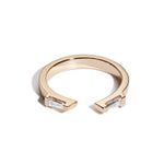 The Landmark Series celebrates love in NYC. Inspired by the structural boldness of iconic New York architecture, the collection captures the essence of Gotham. For the modern romantic, the Chrysler Ring No. 1 is an open ring that features two tapered baguettes portraying one of the shards featured in the sunburst steel crown. The band has a 4mm opening and can be worn as a standard or midi-ring. It is made to be stacked perfectly with any engagement ring or the Chrysler Ring No. 2. Each piece empowers the wearer to reveal romance by making their very own love landmark.