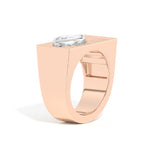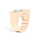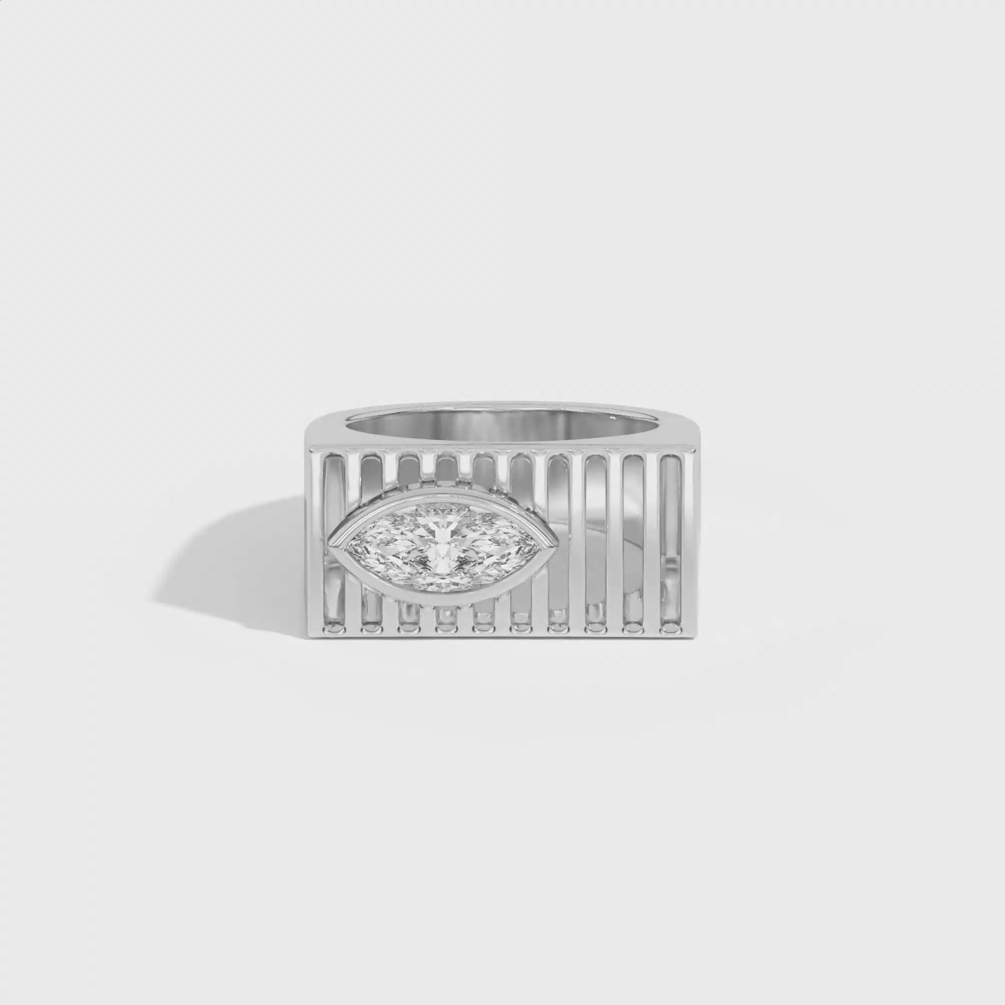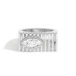 The Scarpa D ring highlights the beauty of connections and transitions, with textures and patterns that invite closer inspection. This ring celebrates Carlo’s signature rhythm, inviting a dance of light and shadow with every movement. Off-center, each ring creates a connection between stone and metal with a platinum bezel-set diamond, encased to enhance the unique shape of each stone cut.